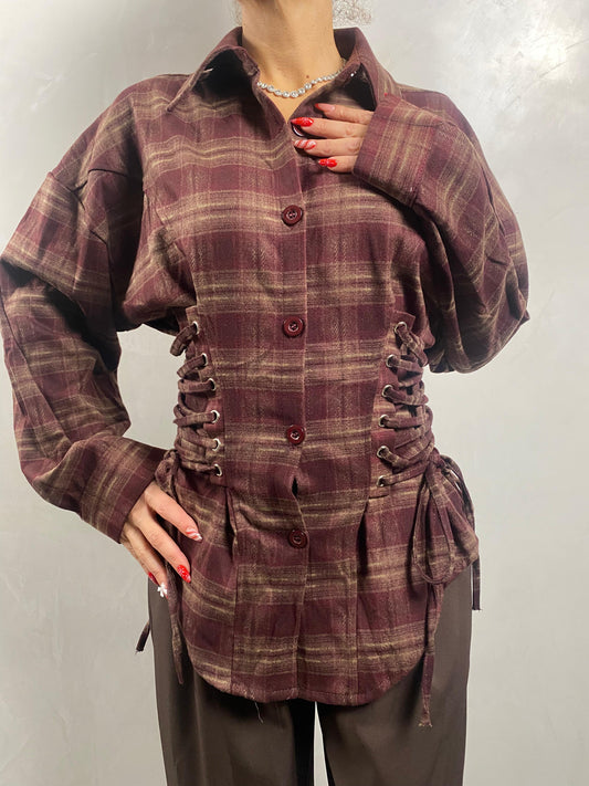 Camicia a quadri con lacci laterali regolabili in vita