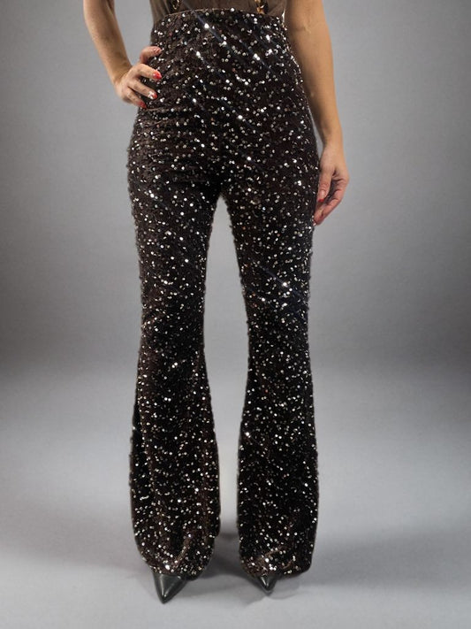 Pantaloni paillettes marrone