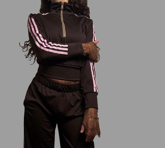 Completo tuta con dettagli in pizzo pink