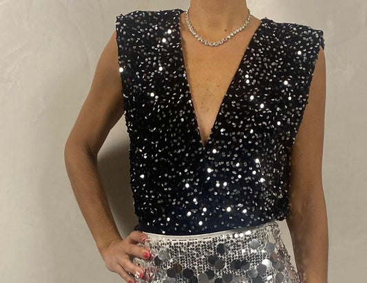 Body paillettes con scollo profondo